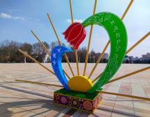 В разных уголках столицы в скверах и прогулочных зонах высажены яркие тюльпаны и нарциссы, зацвели деревья в парках, напоминая горожанам о приходе весны, а на улицах и в торговых точках появились таблички и баннеры с праздничными поздравлениями.